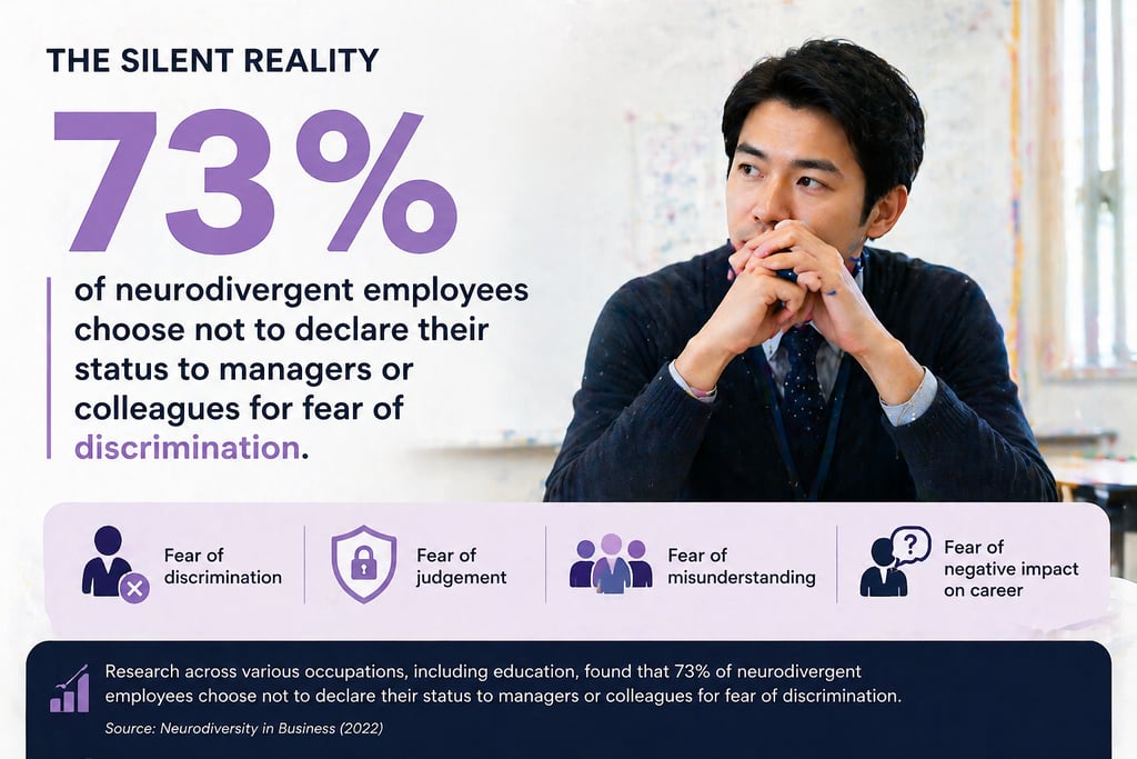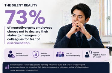 Reasons for Secrecy: In broader workplace studies, 31% to 67% of neurodivergent employees choose not to tell their managers. Common reasons include:
