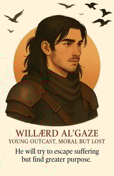 If Chaelle is the storm, Will is the quiet aftermath — still, calculating, and burdened by the ghosts of his past. Born an outcast and shaped by rejection, he seeks purpose in a world that has never offered him belonging.